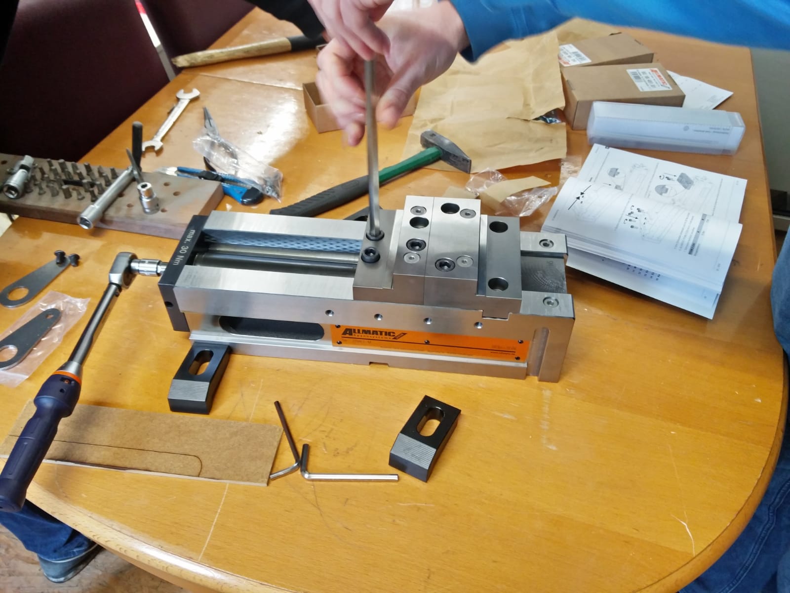 Unsere Stahlfräse hat viel Potential, aber ohne Schraubstock ist es schwer, das auszuschöpfen. Doch Abhilfe ist da, denn die ALLMATIC-Jakob Spannsysteme GmbH war so großzügig, uns einen voll ausgestatteten TITAN 2 M zu spenden!